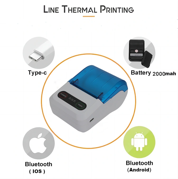 • 58mm အပူပေးပြေစာ ပရင်တာ ဘလူးတုသ်58mm အပူပေးပြေစာ ပရင်တာ ဘလူးတုသ်